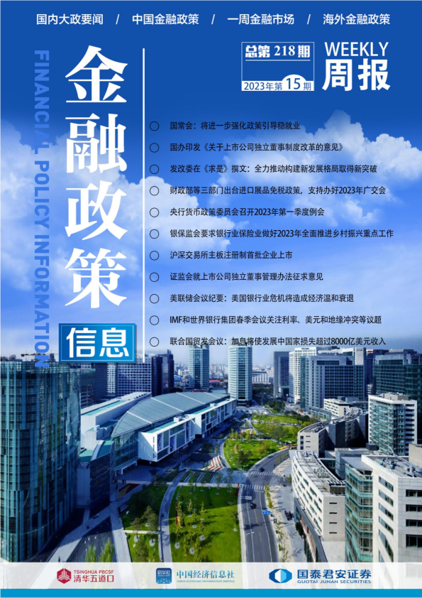 《金融政策信息》周報2023年第15期(4月10日-4月16日)